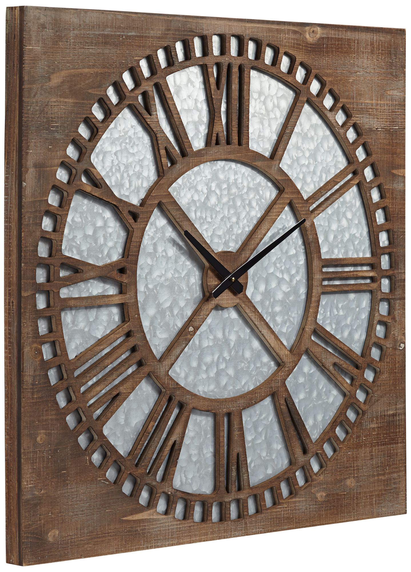 Some are chiming clocks while others are completely silent. 27" x 24" Rustic Reflections wood wall clock, features a square blue frame, weaved pattern detailed in blue and beige strokes, beige finish on clock hands and numbers Read More. Woodentimes is despite COVID-19 very much open for business.