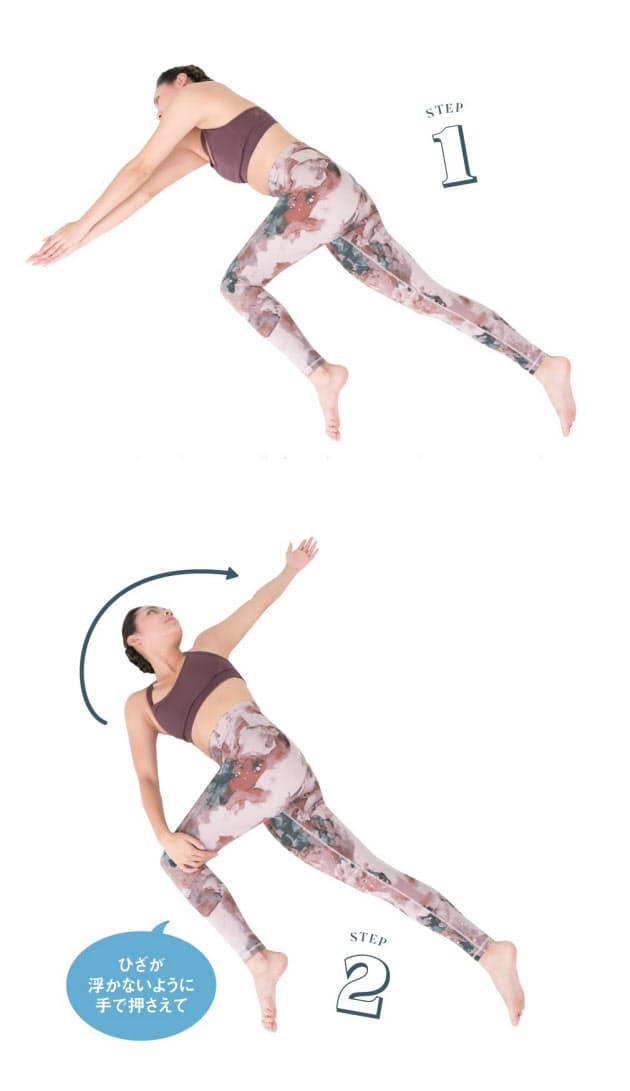 うつ伏せでおなかをねじるポーズ 腰痛改善 グラヴィティヨガ Felia フェリア 南日本新聞
